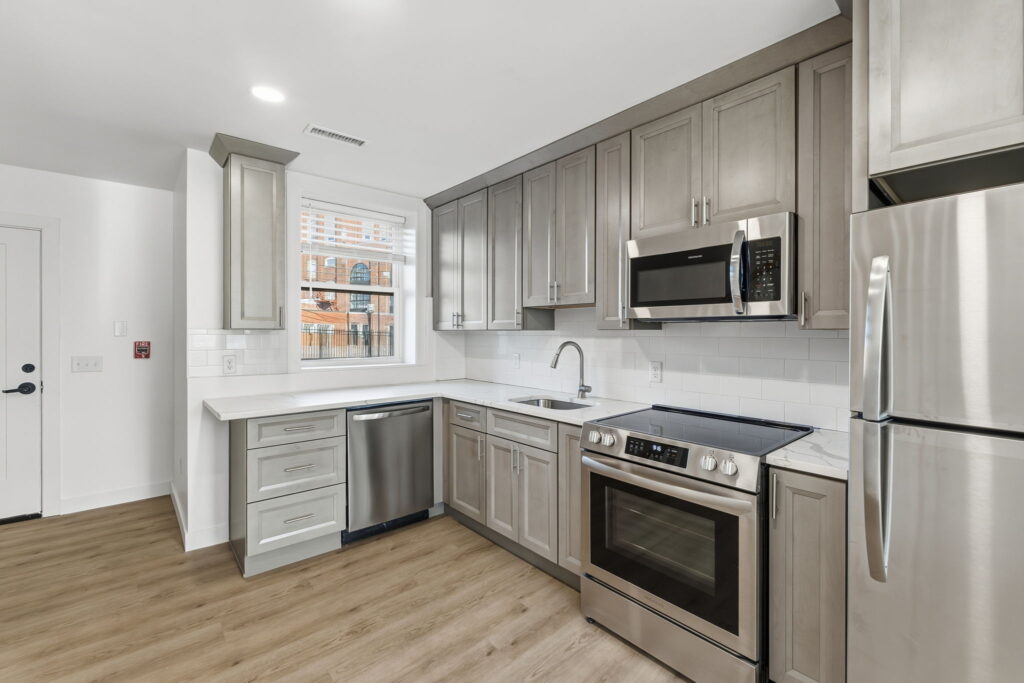 • Quartz countertops & custom cabinetry